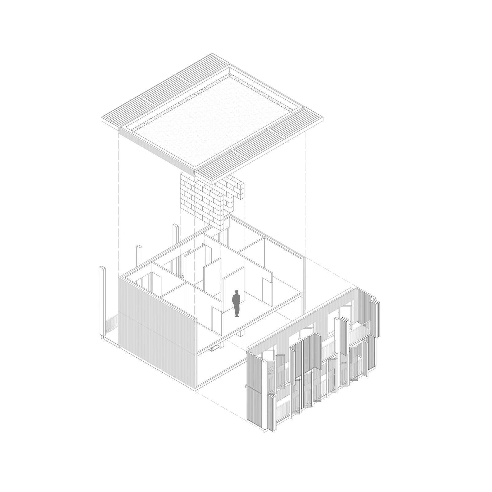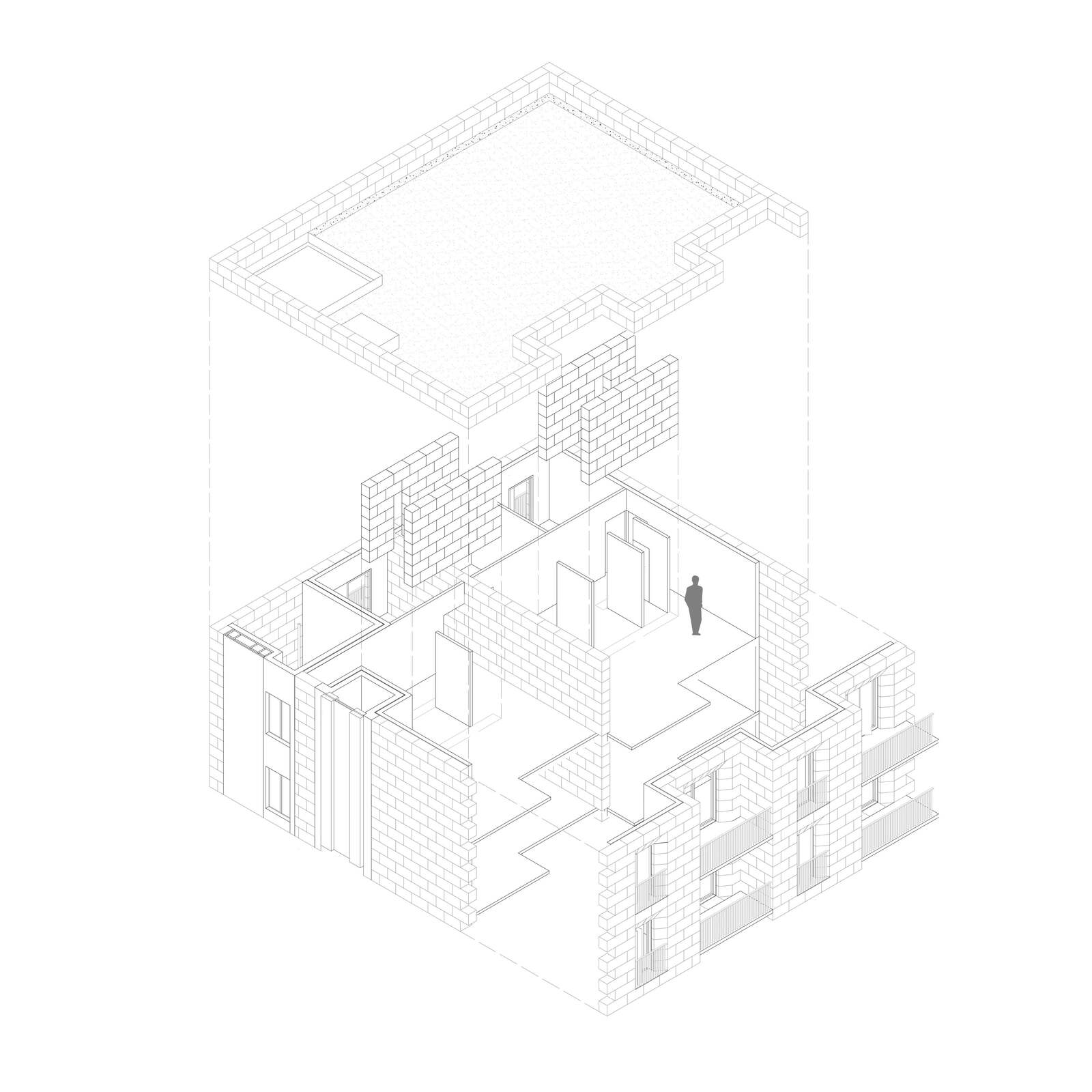 Les immeubles de pierres massives sont desservis par des circulations verticales avec des paliers ouverts et traversant, servant de terrasse partagée à chaque niveau. Les plots centraux construits en bois, quant à eux, proposent des coursives, liées aux immeubles en pierres. Les matériaux jouent un rôle essentiel dans la conception, notamment la pierre massive pour la solidité et la durabilité, et le bois pour sa flexibilité et légèreté. L'habitat vu dans le projet est pensé pour offrir une variété de logements agréable selon les besoins d'une famille, de personnes âgées et d'étudiants.