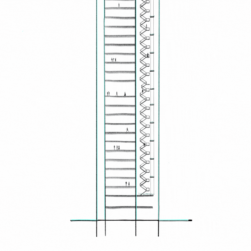 Les matériaux réfléchissants, comme le verre, créent un dialogue visuel entre le bâtiment et son environnement. Le miroir d’eau situé au pied de l’immeuble se prolonge dans les façades, reflétant les nuances du ciel et les paysages environnants. Cette approche transforme le bâtiment en une œuvre dynamique, dont l’apparence évolue au gré des conditions atmosphériques et des saisons.